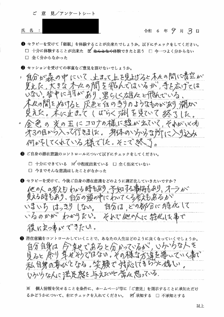 2025年5月受講 Y.S.さん 60代女性 【 NGH米国催眠士協会公認ヒプノセラピスト 】