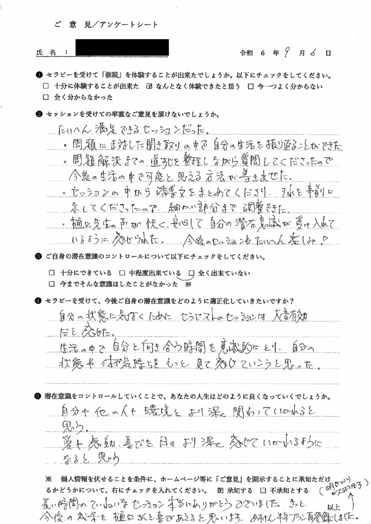 2025年5月受講 T.M.さん 50代男性 【 NGH米国催眠士協会公認ヒプノセラピスト 】
